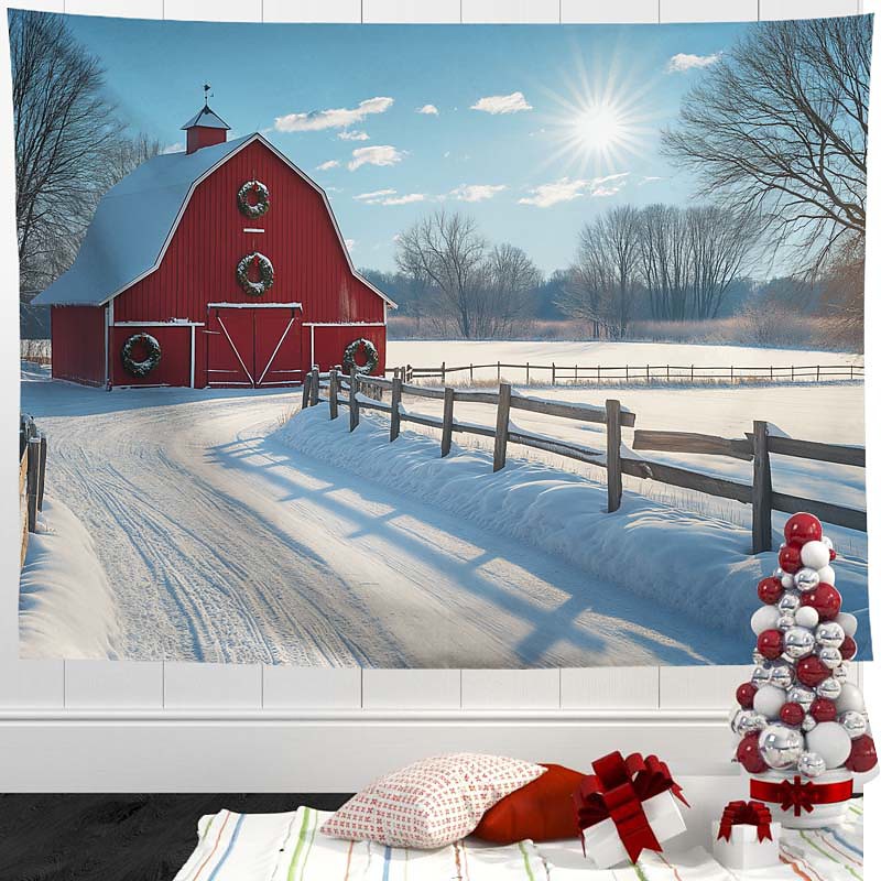 Christmas Tapestry – Festive Holiday Wall Hanging, Santa Snowflake Christmas Tree Winter Wonderland Decorative Tapestry for Home Bedroom Living Room Decoration