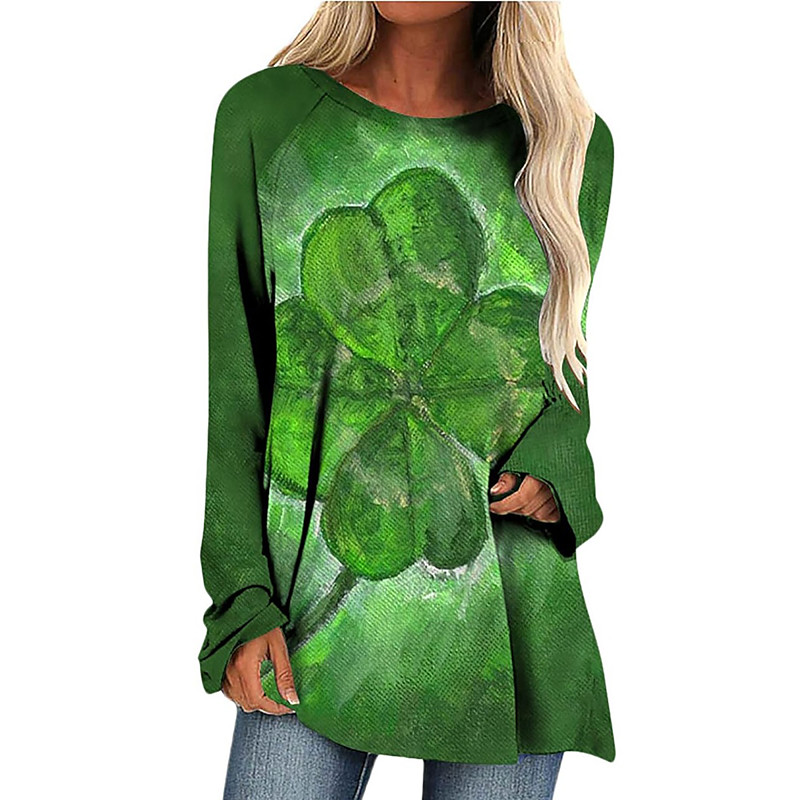 St. Patrick's Day Women's T Shirt Shamrock Casual Long Sleeve Crew Neck Long Tops Daily Print Green Spring Fall