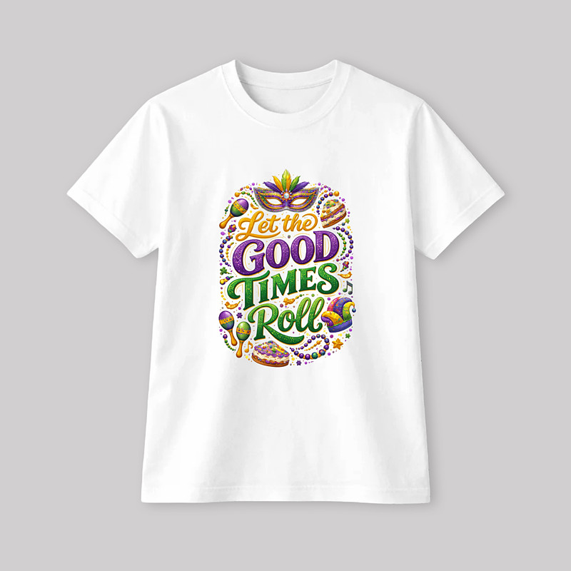 Mardi Gras 2026 T-shirt Sleeve T-shirt for Women's Adults' Hot Stamping for Carnival Mardi Gras Club Festival