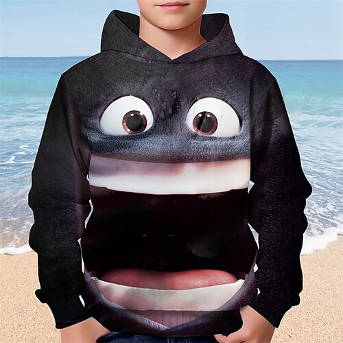 Jungen Cartoon Lustiges Lächeln Gesicht Hoodie Langarm 3D Druck Herbst Winter Mode Streetwear Kinder 4-12 Jahre Mit Kapuze Outdoor Casual Täglich Normale Passform