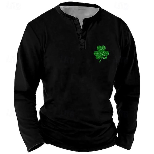 T-Shirt Giorno di San Patrizio da Uomo T-Shirt Camicia Henley Maniche Lunghe Henley Primavera e Autunno Moda Trifoglio Designer Base Bottoni Vacanza Uscita Giorno di San Patrizio Nero Bianco