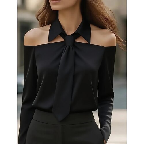 Per donna Camicia Top estivi Blusa Tinta unica Casual Spiaggia Top Regolari Nero Bianco Giallo Blu Reale Azzurro cielo Estate Primavera Autunno