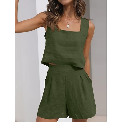 Per donna Set di biancheria in cotone Set di Pantaloncini Senza Maniche Collo quadrato Tinta unica Moda Streetwear Casuale Quotidiano All'aperto Blu Nero Giallo Estate Vestibilità regolare