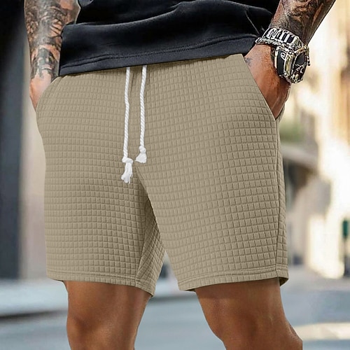 Per uomo Pantaloncini Waffle Shorts Pantaloncini casual Testurizzato Semplice Comodità Traspirante Lunghezza al ginocchio Casuale Quotidiano All'aperto Vacanza Moda Nero Bianco Micro-elastico
