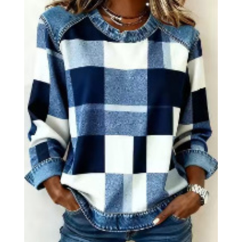 Per donna Blusa Plaid Vintage Elegante Manica Lunga Girocollo Top Regolari Quotidiano Ferie Uscire Blu Nero Rosa Rosso Arancione Primavera Autunno