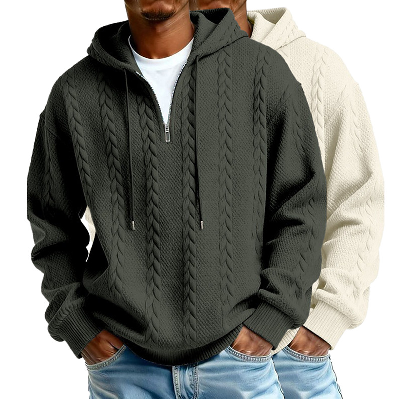 Men's Jacquard Hoodie Quarter Zip Hoodie ApricotGray Light BlueBlack WhiteLight Gray Light GreenNavy Blue Light BluePurple Hooded Plain Textured Casual Daily Sports Outdoor Streetwear Cool