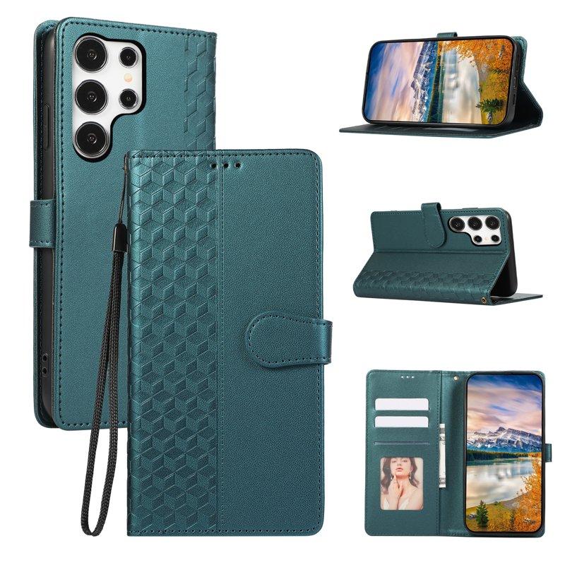 Plånboksfodral för Samsung Galaxy S26 Ultra 3D Rhombus Konstläder - Grön
