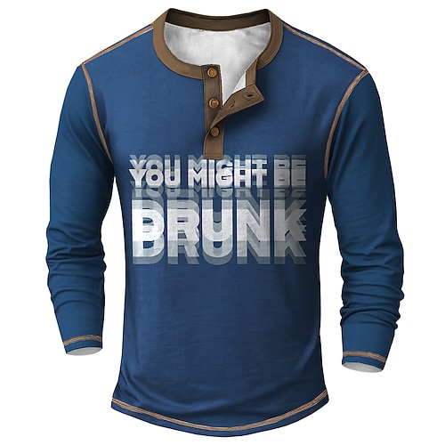 Herren Lustiges Trinken Langarm Henley-T-Shirt Du könntest betrunken sein Grafik Rot
