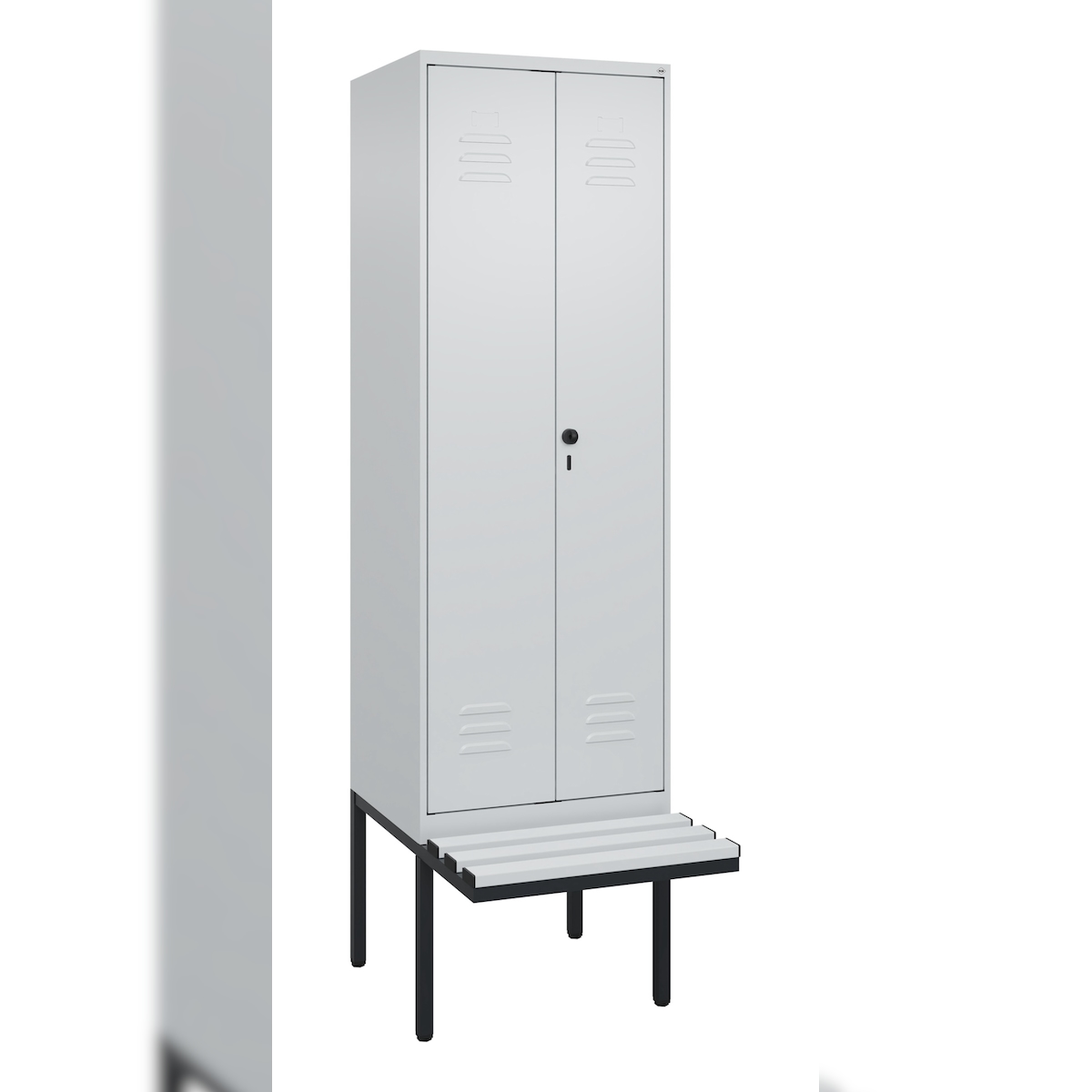 C+P Z-Spind Classic PLUS, schwebender Sitzbank aus Buche 2 Abteile, HxBxT 212x40x82cm, Sicherheitsdrehriegel, Verkehrsweiß von PROREGAL