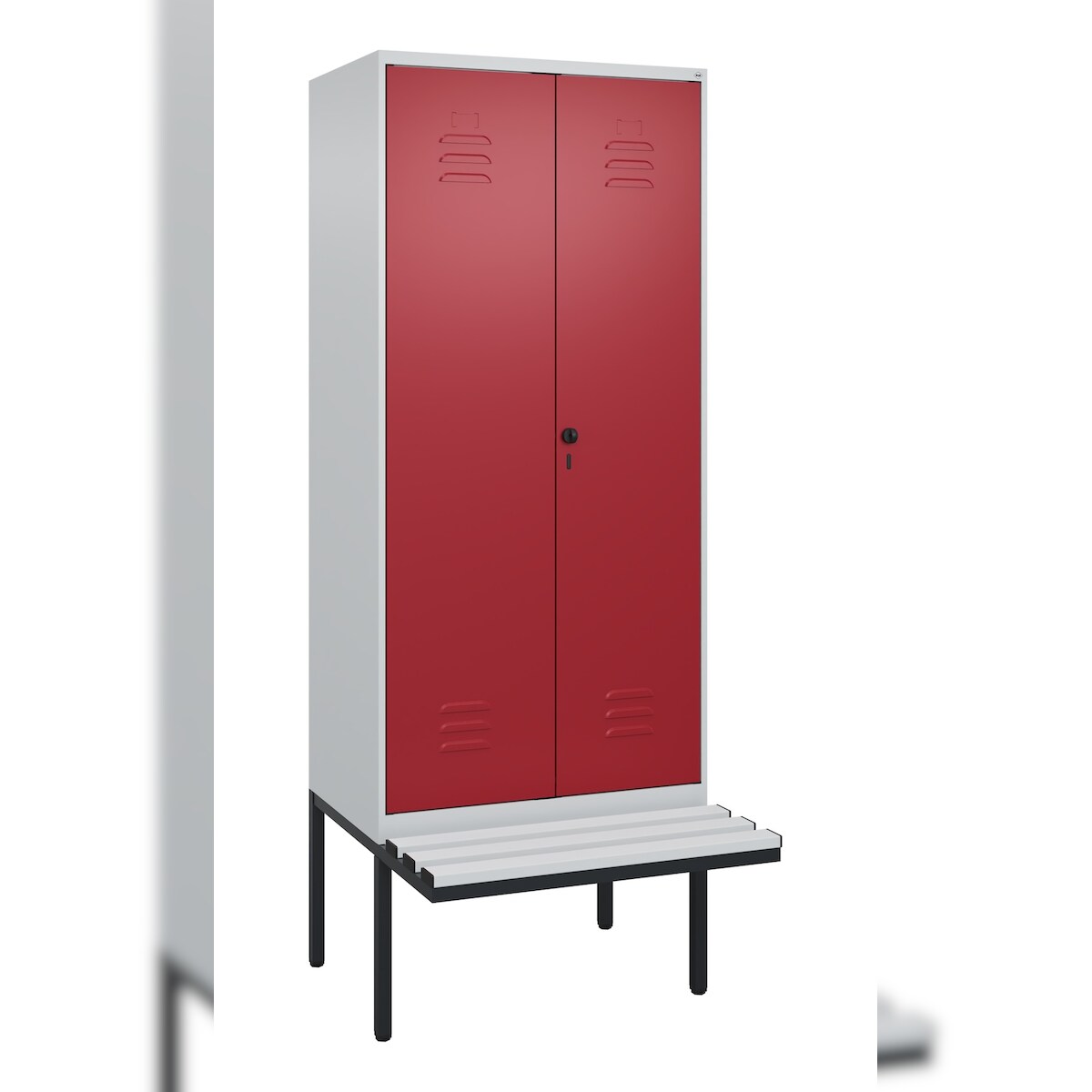 C+P Spind Classic PLUS, Füßen, 8 Abteile, HxBxT 195x100x50cm, Sicherheitsdrehriegel, Hellgrau/Rubinrot von PROREGAL