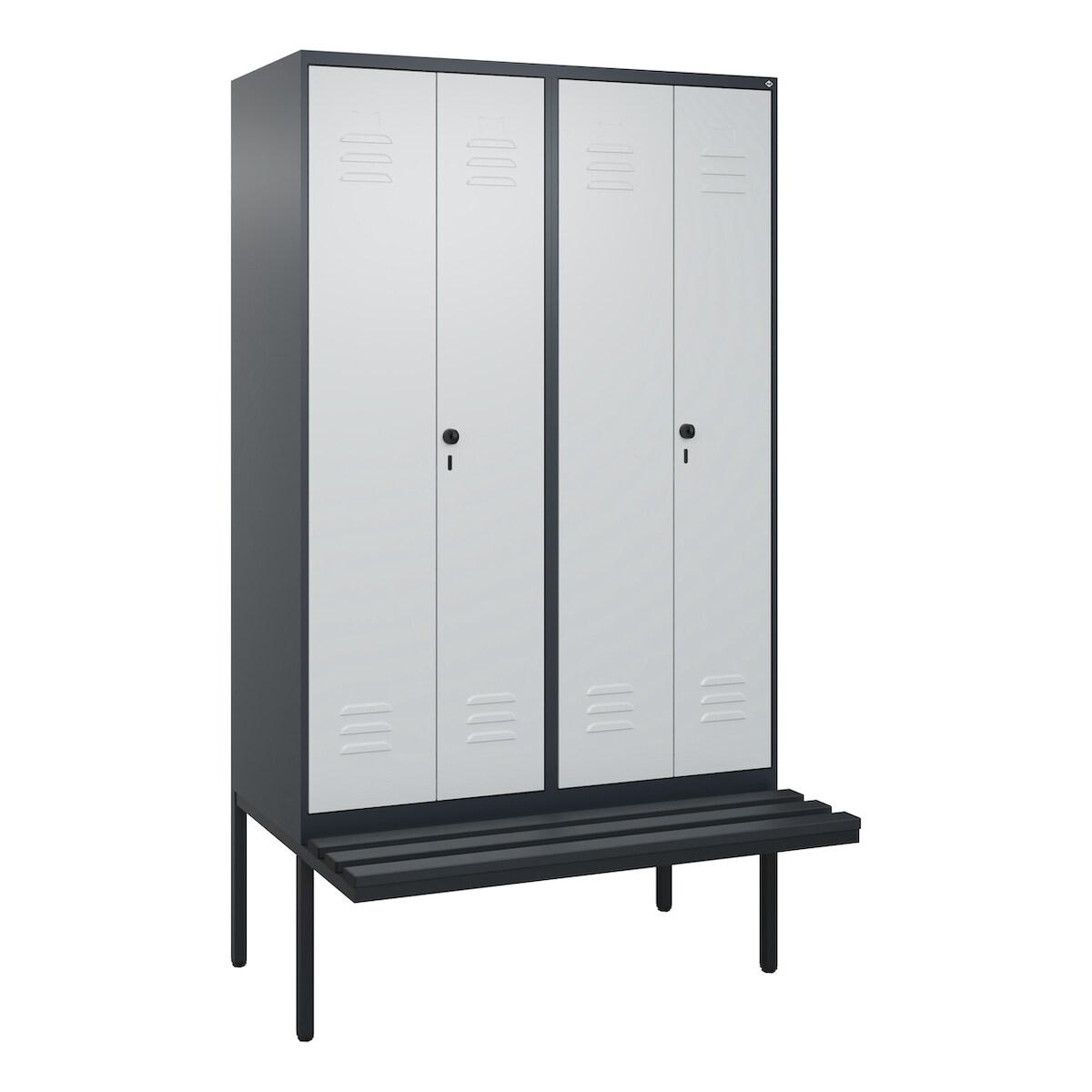C+P Doppel-Spind Classic PLUS, Kunststoff schwebende Sitzbank, 4 Abteile, HxBxT 212x120x82cm, Sicherheitsdrehriegel, Anthrazit/Hellgrau von PROREGAL