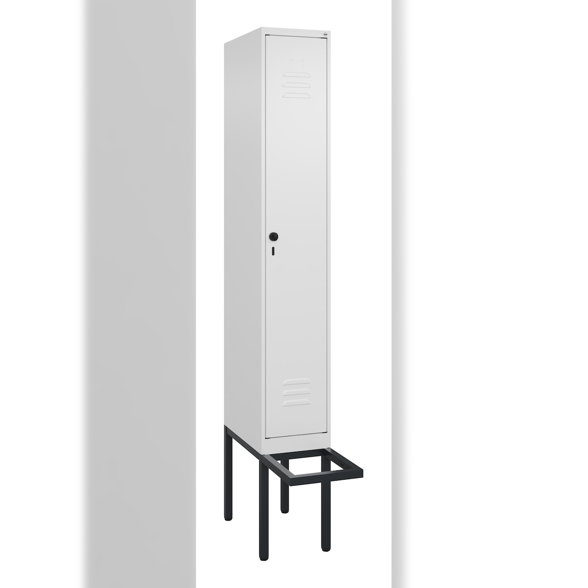 C+P Spind Classic PLUS, schwebender Sitzbank aus Buche 1 Abteil, HxBxT 212x30x82cm, Sicherheitsdrehriegel, Verkehrsweiß von PROREGAL