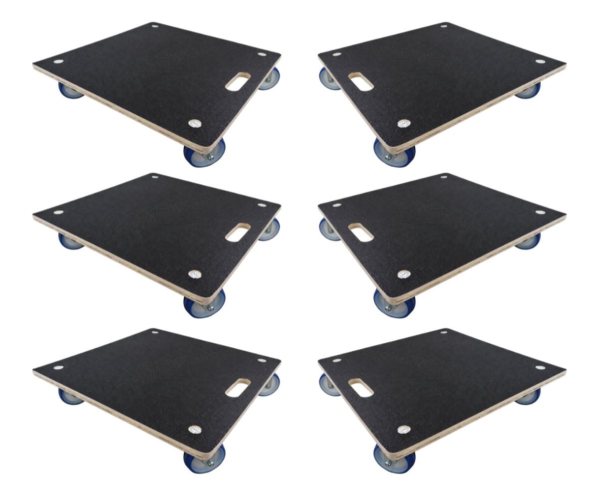 PROREGAL Mega Deal 6x Profi Transportroller mit 4 Rollen HxBxT 15x58x58 cm Traglast 300 kg Siebdruck Holzplatte Schwarz Möbelroller Möbelhund
