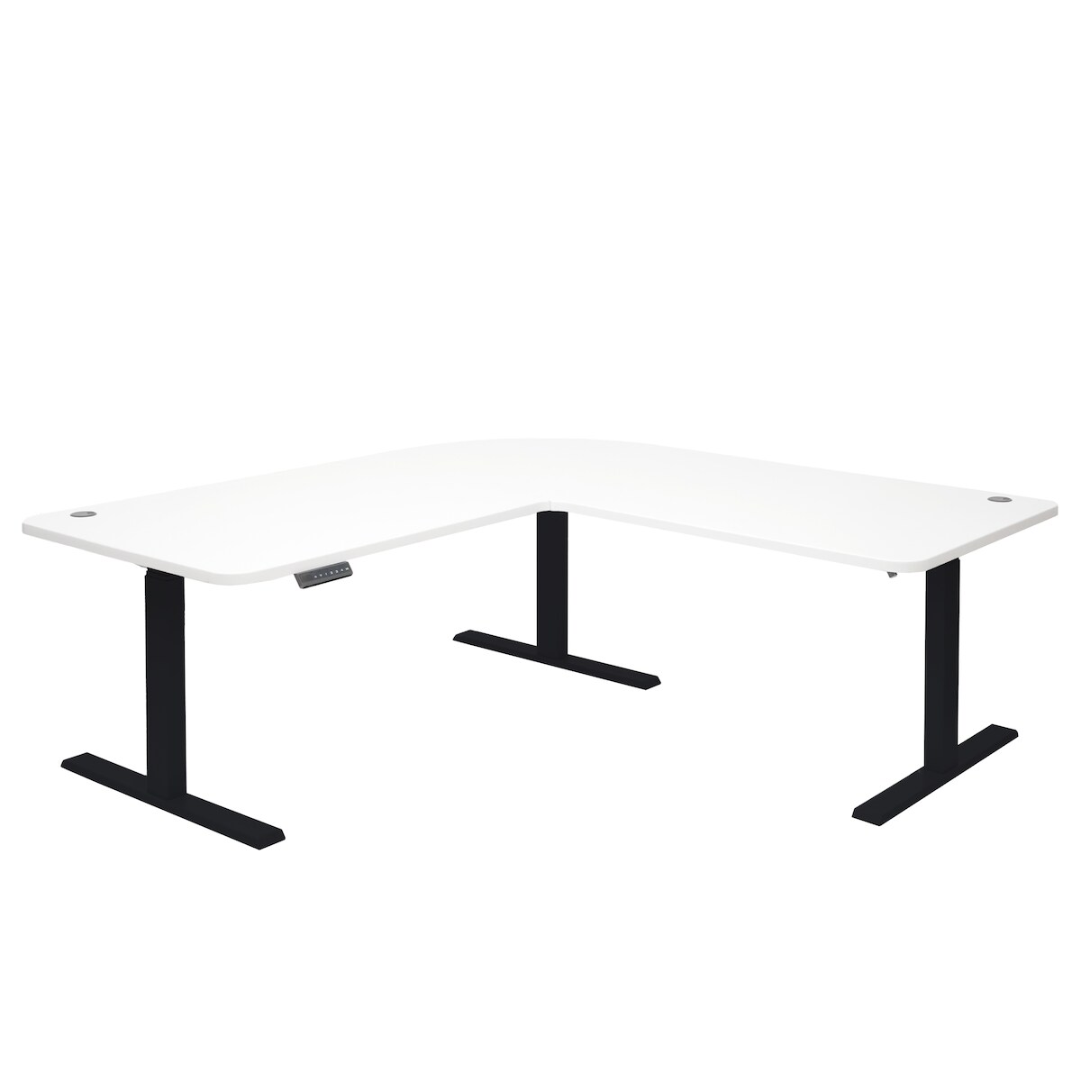 Mendler Eck-Schreibtisch HWC-D40, Computertisch elektrisch höhenverstellbar 178x178cm 84kg MVG ~ weiß, schwarz