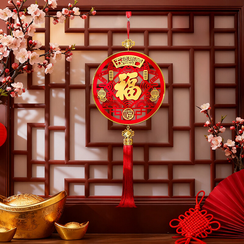 1pc 31.4in Chinese New Year Hanging Ornament, 2026 Spring Festival Fu Character 3D Lucky Pendant with Tassel, Year of The Horse Lunar New Year Hanging Decorations for Home Office Wall Door Window Wu Fu Lin Men