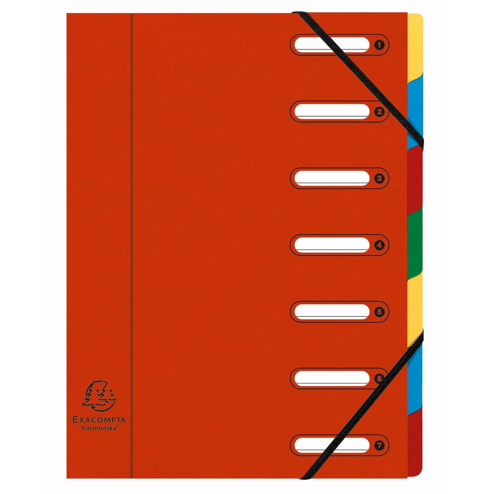 Exacompta Ordnungsmappe HARMONIKA mit ausgestanzten Fenstern und Gummizug , aus Manilakarton, mit 7 Fächern, für DIN A4