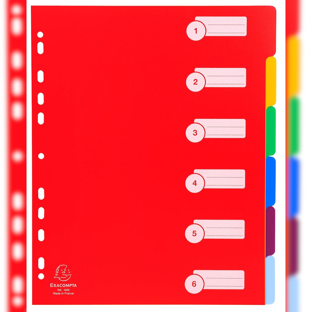 Exacompta 4806E 25x Register DIN A4 Maxi aus festem PP 350µ, blanko, 6-teilig - Farben sortiert