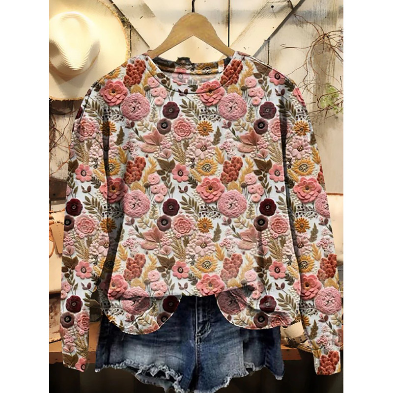 Women's Pullover Sweatshirt Floral Graphic Vintage Casual Long Sleeve Crew Neck Regular Tops Home Work Street Print Wine Brown Beige Spring Fall Winter