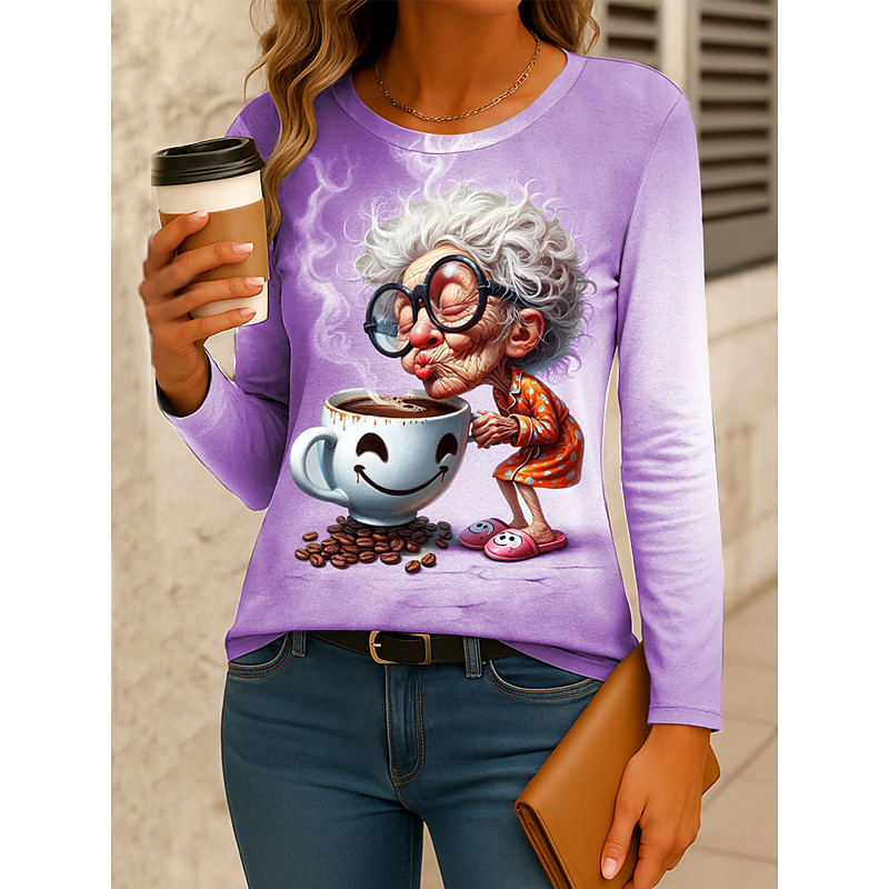 Women's T Shirt Graphic Cartoon Gradient Vintage Stylish Classic Long Sleeve Crew Neck Regular Tops Daily Print Blue Pink Purple Green Gray Spring Fall Winter
