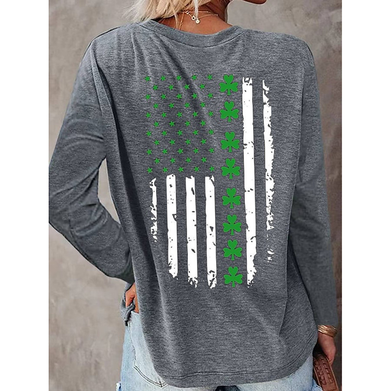 St. Patrick's Day Women's T Shirt Shamrock Stylish Classic Casual Long Sleeve Crew Neck Regular Tops Daily Print Black Green Gray Spring Fall