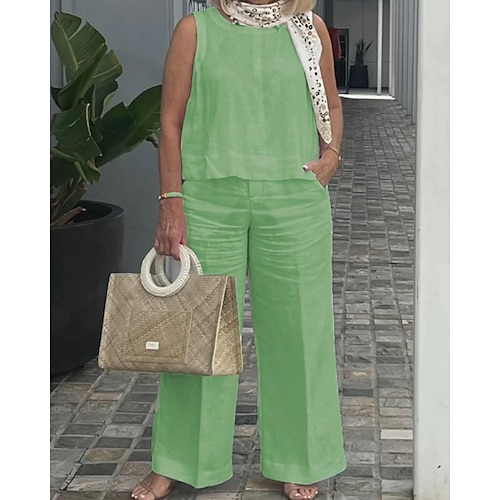 Per donna Elegante Moda Streetwear Set di biancheria in cotone Set di Pantaloni Bolero Top Senza Maniche Girocollo Tinta unica Patchwork Casuale Quotidiano All'aperto Giallo Blu Viola Estate