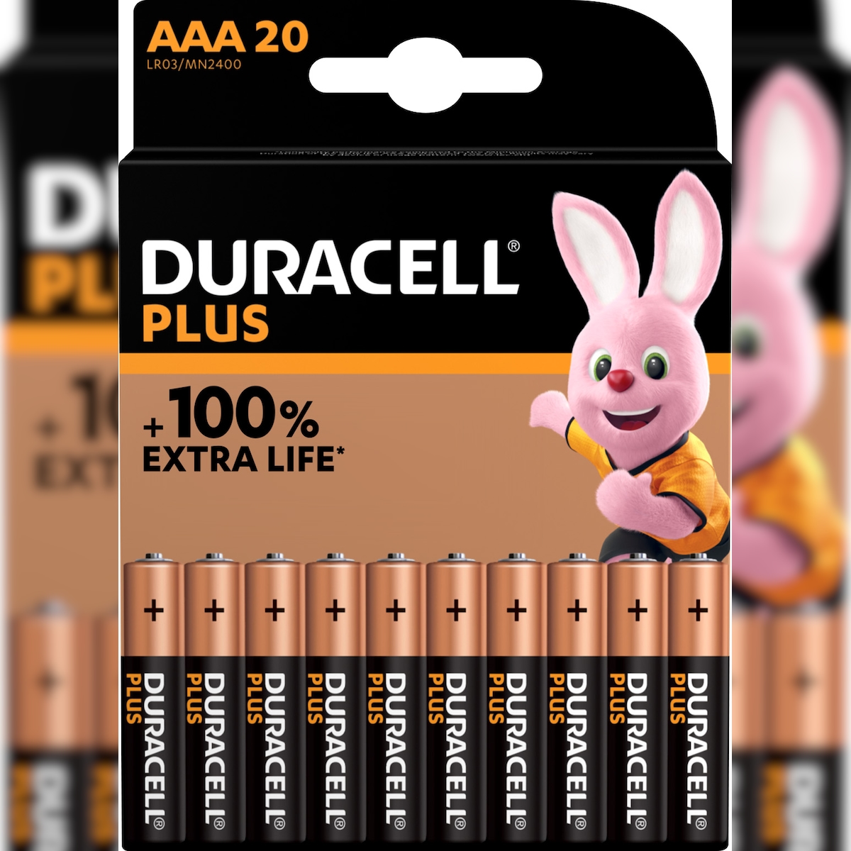 Duracell Batterie Alkaline, Micro, AAA, LR03, 1.5V Plus, Extra Life, Retail Blister (20-Pack)