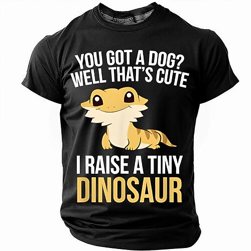 Maglietta Divertente Uomo Alzo un piccolo Dinosauro - Maglietta Grafica per Amanti dei Rettili Drago Barbuto a Maniche Corte