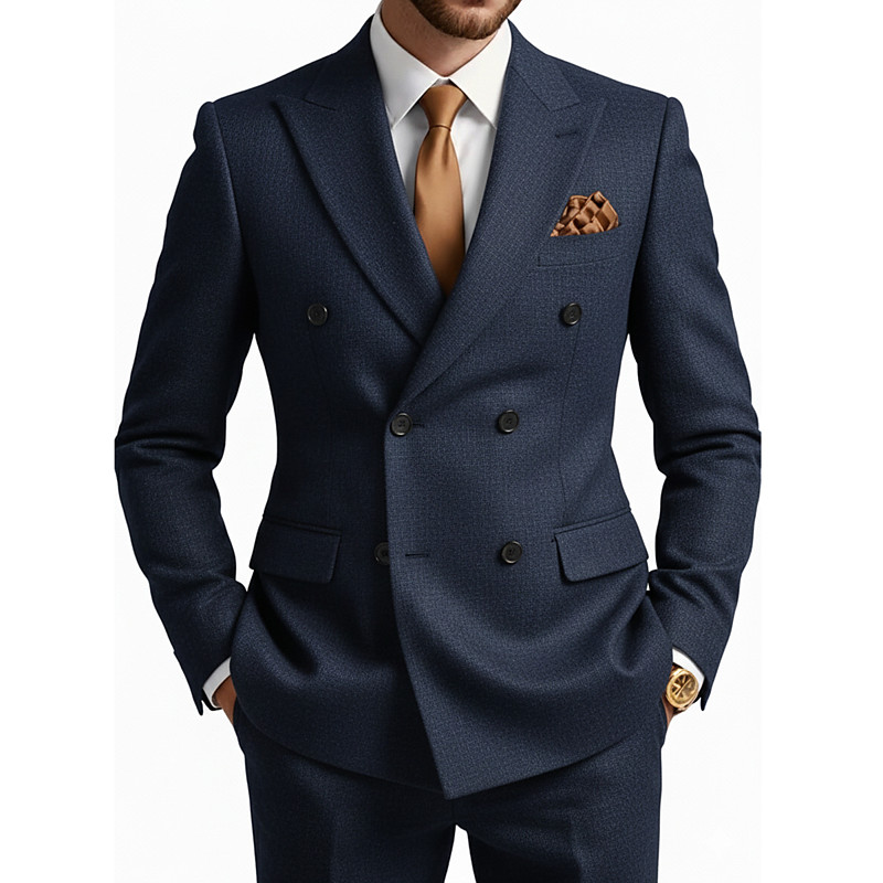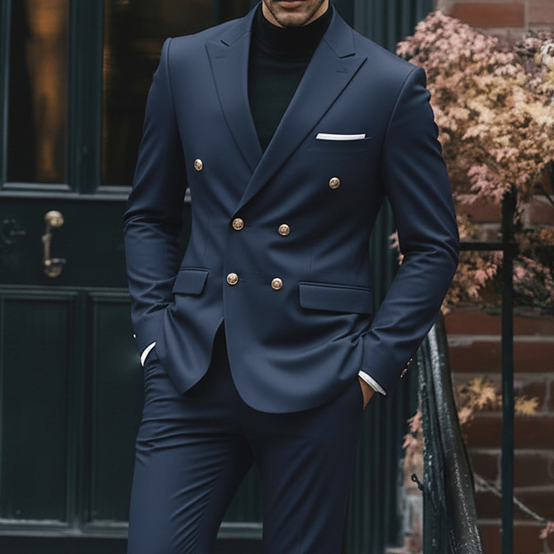 Men's Wedding Suits Peak Light Grey Dark Blue Business Formal Solid Colored Tailored Fit 2 Piece Double Breasted Six-buttons