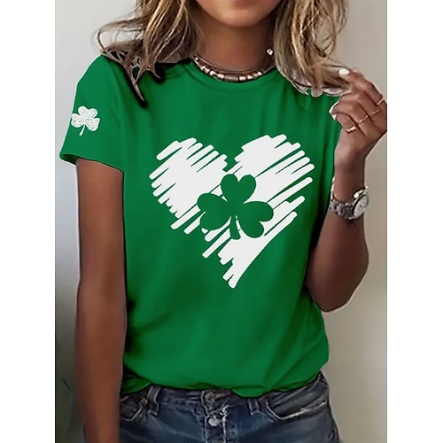 T-Shirt da donna di San Patrizio con cuore Shamrock Moda Maniche Corte Collo Rotondo Top Regolari T-Shirt di San Patrizio Stampa Casuale Verde Erba Nero Verde Chiaro Verde Militare Verde Scuro Estate