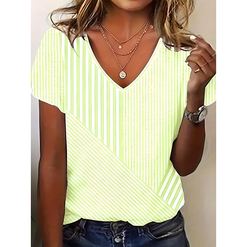 Women's T Shirt Striped Stylish Casual Short Sleeve V Neck Regular Tops Daily Print Pink Summer Spring