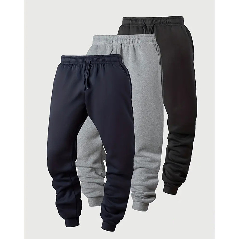 Multi Packs 3pcs Men's BrownGrayBlack Sweatpants Trousers Drawstring Elastic Waist Plain Vacation Daily Wear Polyester Spring