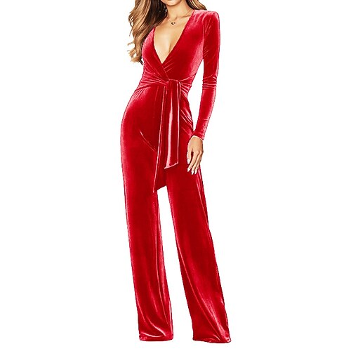 Per donna Tuta Attivo Tinta unica Manica Lunga Gamba larga Scollo a V Con Cintura Vacanza Feste Vestibilità regolare Blu Nero Vino Primavera