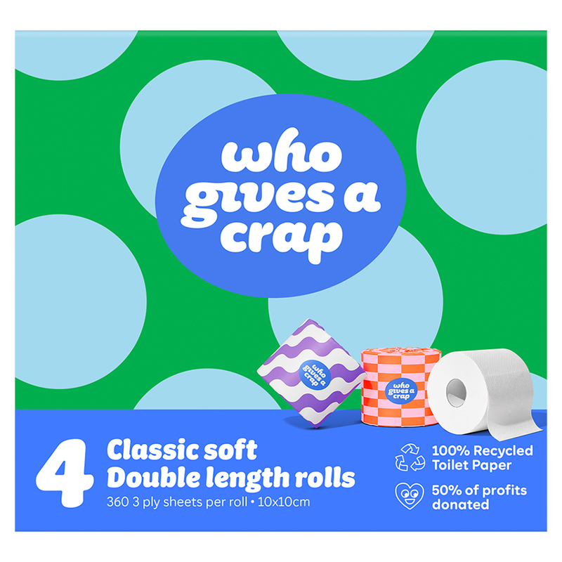 Who Gives A Crap 100% Recycled Toilet Paper 4 Double Length Rolls