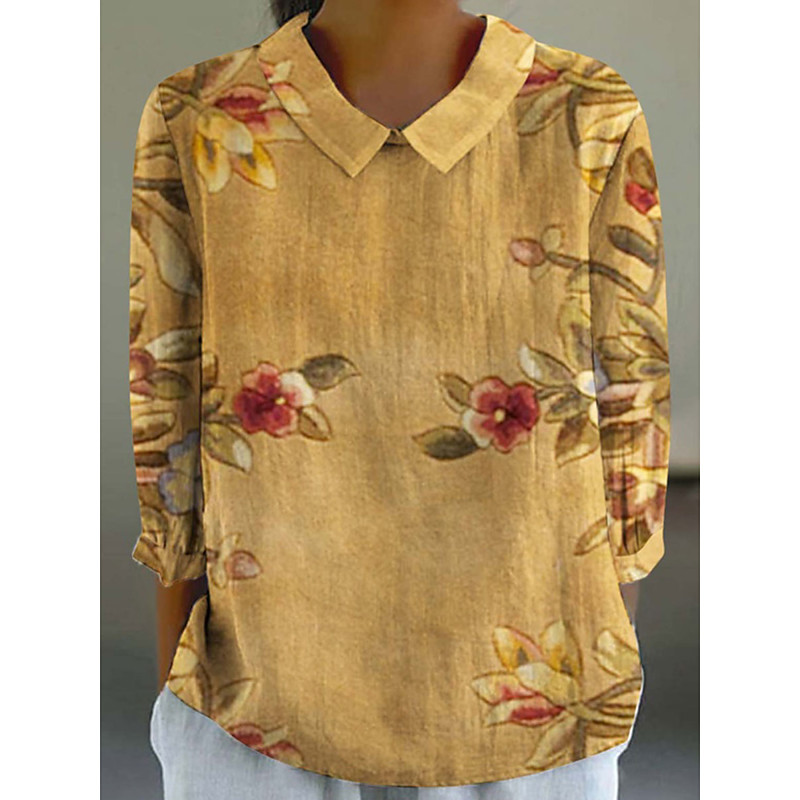 Women's Shirt Linen-Inspired Shirts Graphic Vintage Daily Stylish Long Sleeve Shirt Collar Party Work Daily Yellow Blue Green Spring Fall