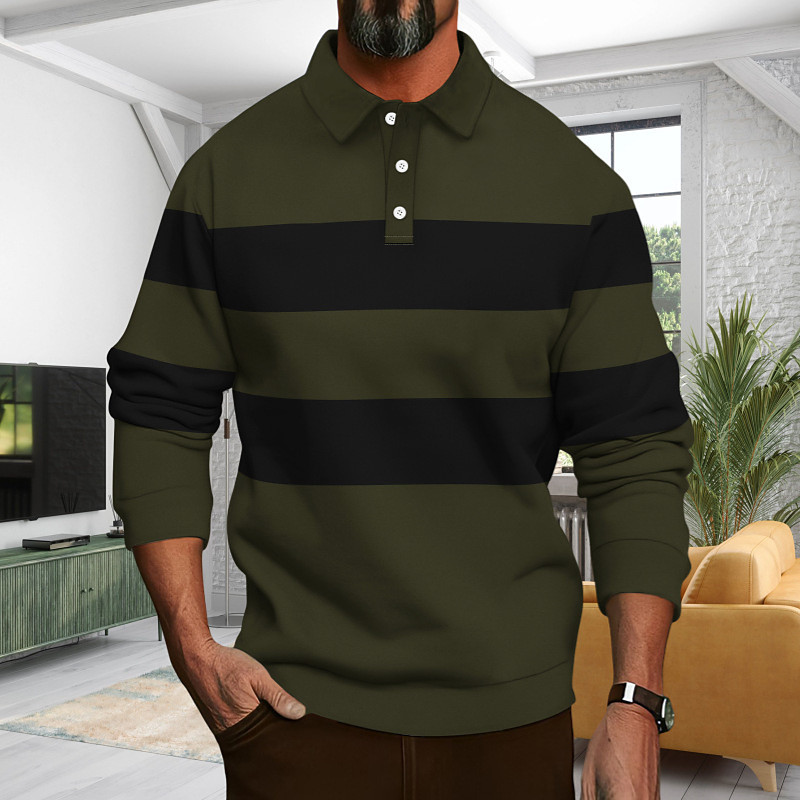 Men's Golf Shirt Golf Polos Shirts Work Casual Lapel Long Sleeve Basic Modern Color Block Stripe Buttons Spring Fall Regular Fit Black White Army Green Gray Golf Shirt