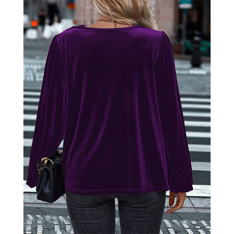 Women's Velvet Blouse Dressy Tops Plain Elegant Vintage Ladies Long Sleeve Shirt Collar Long Tops Daily Work Holiday Ruched Patchwork Buttons Maroon Light Purple Purple Brown Green Winter