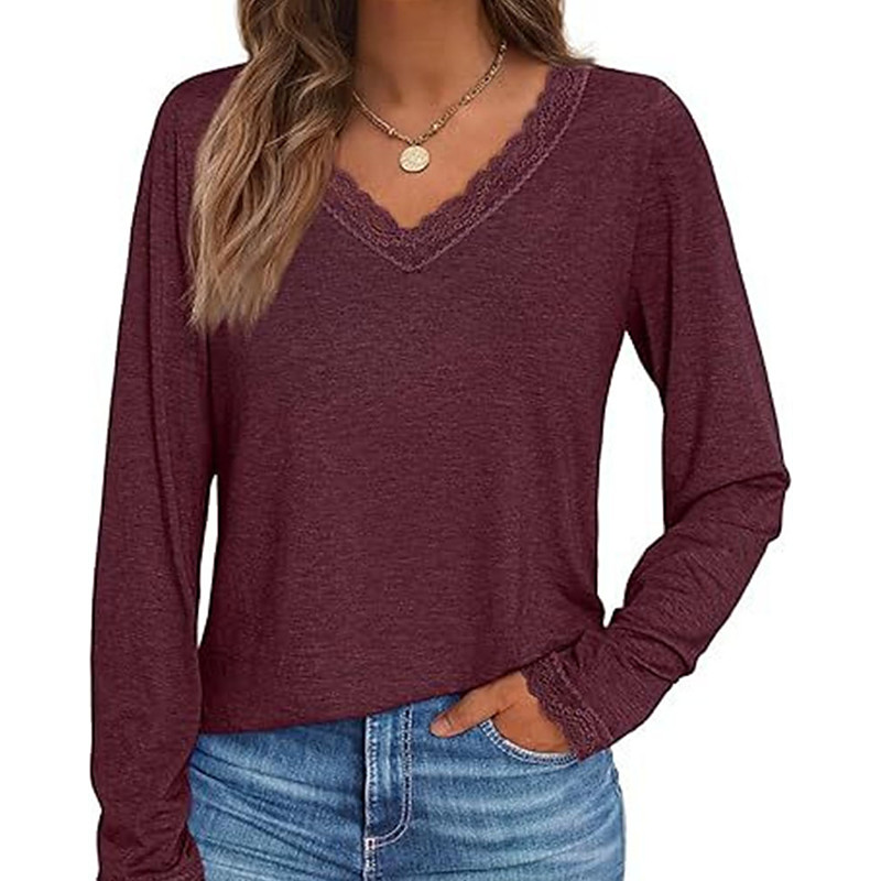 Women's Blouse Dressy Tops Lace Tops Solid Color Plain Elegant Vintage Ladies Long Sleeve V Neck Regular Tops Work Daily Holiday Lace Trim Draped Black White Wine Brown Green Fall Winter