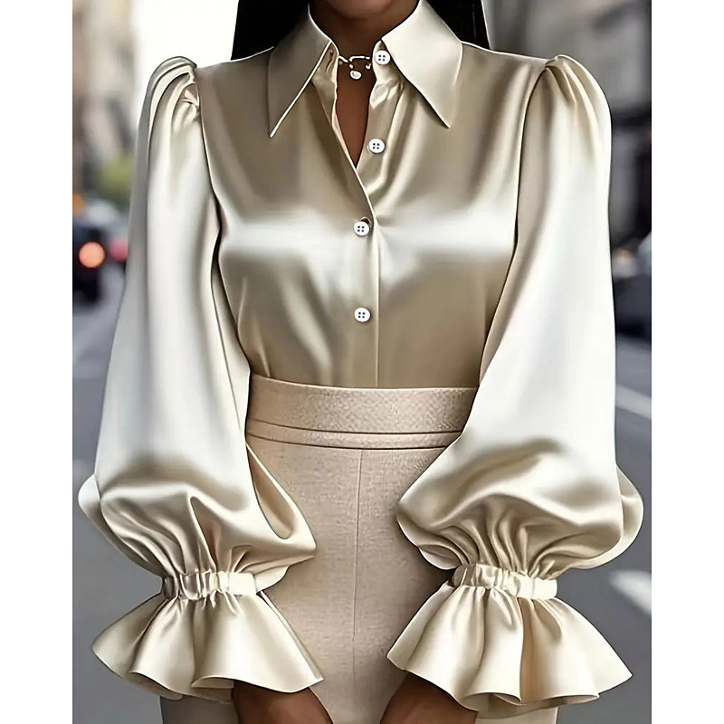 Women's Shirt Dressy Tops Formal Work Shirt Solid Color Plain Elegant Stylish Basic Long Sleeve Collar Party Evening Wear Date Night Outfits White Pink Blue Purple Green Spring Fall Winter