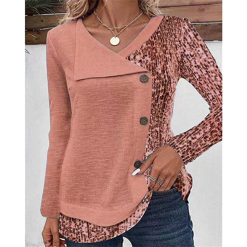 Women's Blouse Dressy Tops Plain Abstract Elegant Vintage Ladies Long Sleeve V Neck Regular Tops Work Daily Holiday Sequins Ruched Buttons Blue Sky Blue Purple Orange Green Fall Winter