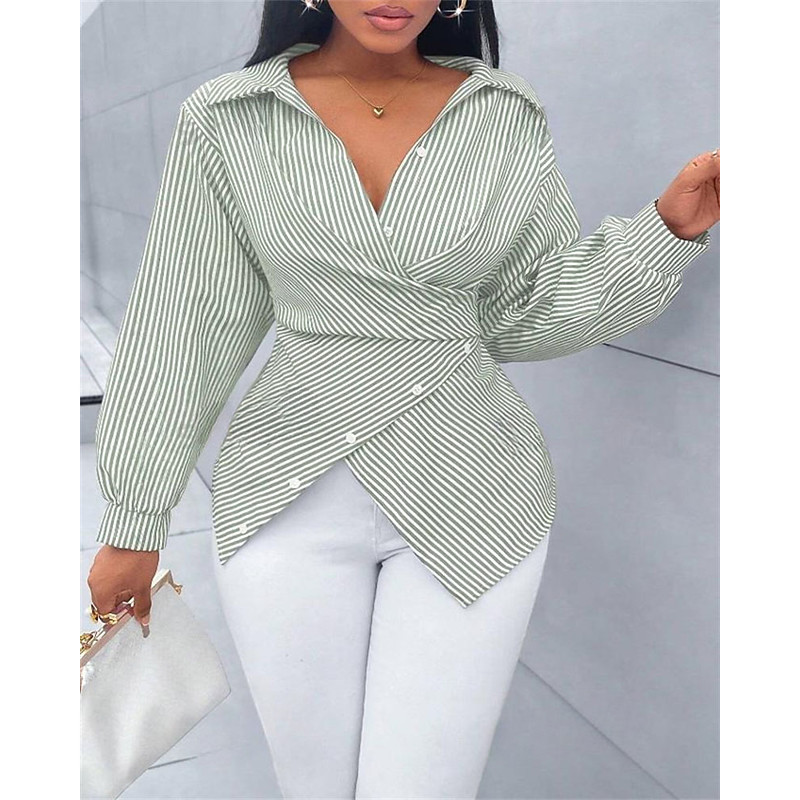 Women's Blouse Dressy Tops Plain Striped Elegant Vintage Daily Long Sleeve Shirt Collar Regular Tops Daily Work Holiday Ruched Buttons Print Black Pink Sky Blue Green Summer Spring