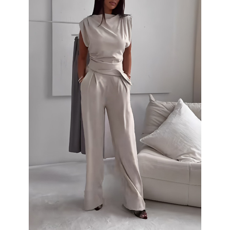 Women's Fashion Streetwear Daily Pants Sets Sleeveless Round Neck Solid Color Ruched Casual Daily Dark Grey Black White Spring Loose Fit