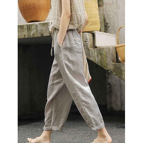 Per donna Pantaloncini in cotone e lino Pantaloni ispirati al lino Pantaloni in cotone e lino Moda Streetwear Essenziale Lunghezza alla caviglia Vita Alta Semplice Tasca Fascia Elastica Comodit