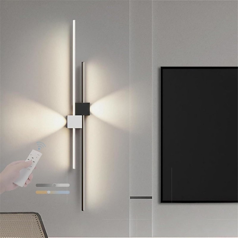 Modern Plug Wall Lamp 11.8-47in Frosted Black LED Acrylic Outdoor Wall Lamp 59 Inch Plug Cable with Opening Acrylic Indoor Wall Lamp Suitable for Bedroom Living Room Bathroom Makeup Corridor