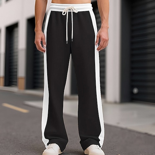 Herren Jogginghose Hose Gerade geschnittene Sweatpants Kordelzug Tasche Elastischer Bund Farbblock Komfort Sport im Freien Täglich Mode Lässig Schwarz Weiß Mikroelastisch