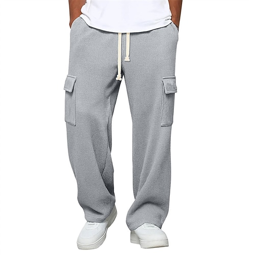 Herren Cargo-Jogginghose Jogginghose Hose Gerade geschnittene Sweatpants Waffelhose Kordelzug Tasche Elastischer Bund Einfach Komfort Sport im Freien Täglich Mode Lässig Dunkelbraun Schwarz