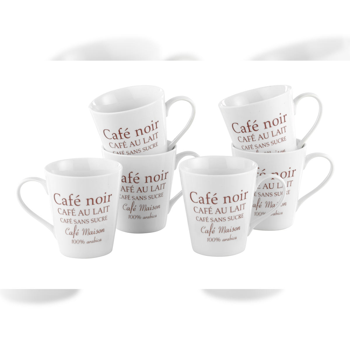 Caterado 6 Kaffeebecher FAKT im Set, Inhalt: 0,25 Liter aus weißem Porzellan mit braunem Druck Cafe Noir,
