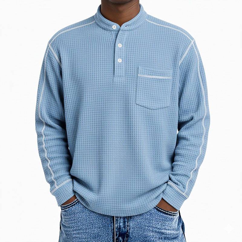 Men's Waffle T-shirt T Shirt Waffle Henley Shirt Long Sleeve Henley All Seasons Solid Color Casual Pockets Casual Home Outdoor Light Blue Light Green Red Top Tee for Men