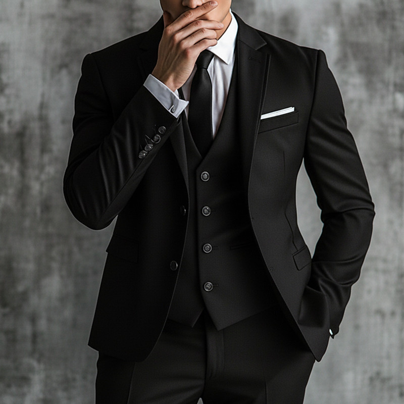 Men's Wedding Casual Business Suits Notch Lapel Black Burgundy Daily Casual Solid Colored Slim Fit 3 Piece Single Breasted Two-buttons