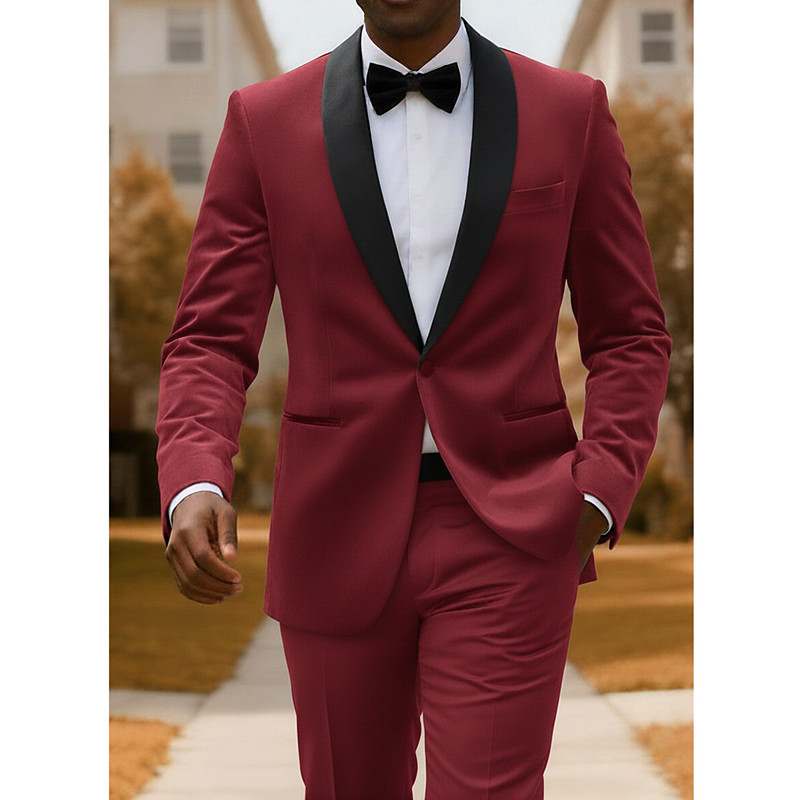 Men's Wedding Christmas Party Velvet Suits Shawl Lapel Yellow Red Christmas Party Solid Colored Standard Fit 2 Piece Single Breasted One-button
