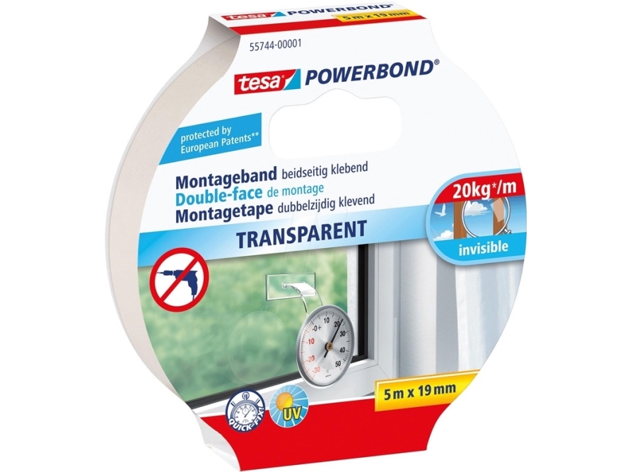 Tesa 55744 Powerbond Transparent dobbeltklæbende 5m x 19mm